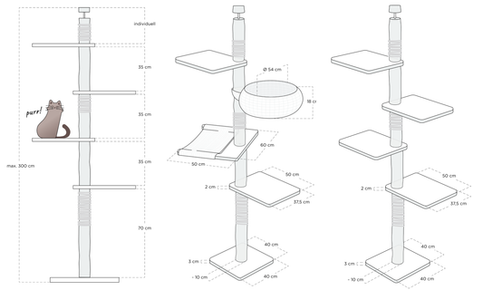 Die Kratzbäume von Cado.design sind daher alle eine gute Wahl, denn jeder unserer Kratzbäume erfüllt unabhängig vom Design all diese Funktionen. Deine Katze wird intuitiv verstehen, wofür das Kratzmöbelstück gedacht ist. Du kannst deinen Kratzbaum ganz nach deinen ästhetischen Vorlieben auswählen und ihn perfekt auf deine Wohnung abstimmen – hier gibt es keine festen Regeln. Du hast die Wahl zwischen Design-Kratzbäumen als Standmodell sowie deckenhohen Kratzbäumen mit Deckenspannern.